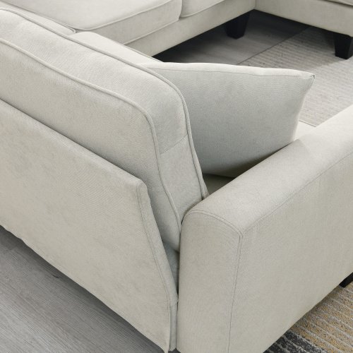 3.High-Quality Sofa: This combination sofa is made of modern premium fabric and sturdy solid wood + iron frame; high density foam and oversized cushions provide upgraded comfort, whether you are sitting or lying down, you can relax. Comfortable design: Simple beveled arms, cushions and legs with a clean, modern aesthetic. Comfortable foam, pocketed spring-filled cushions are supported by a spring pack structure that provides even comfort and support throughout the seating area to prevent sagging.