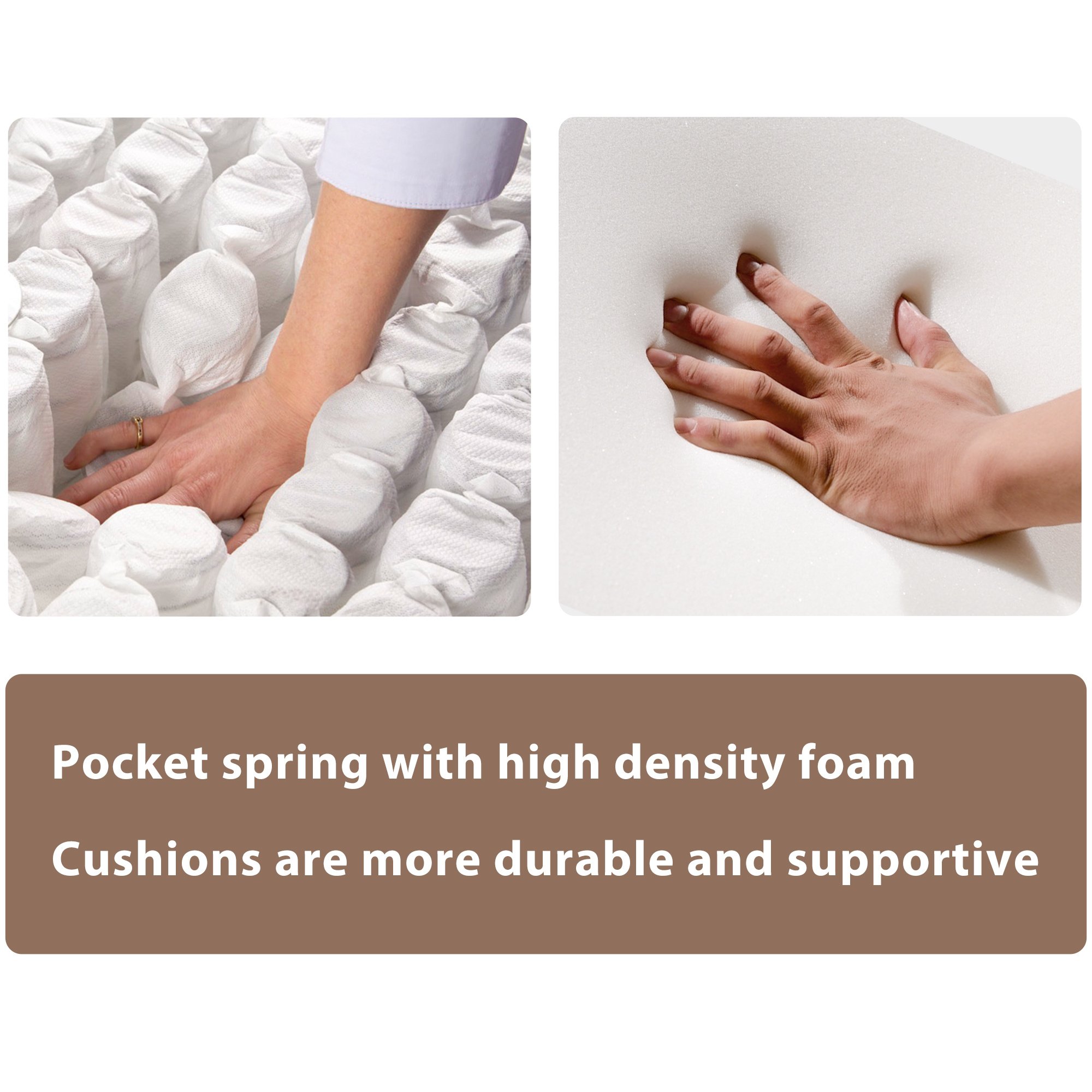 Wide track armrests, box cushions and the legs lend a clean, contemporary aesthetic.With comfortable foam, pocket spring-filled cushions that are supported by a sinuous spring construction.