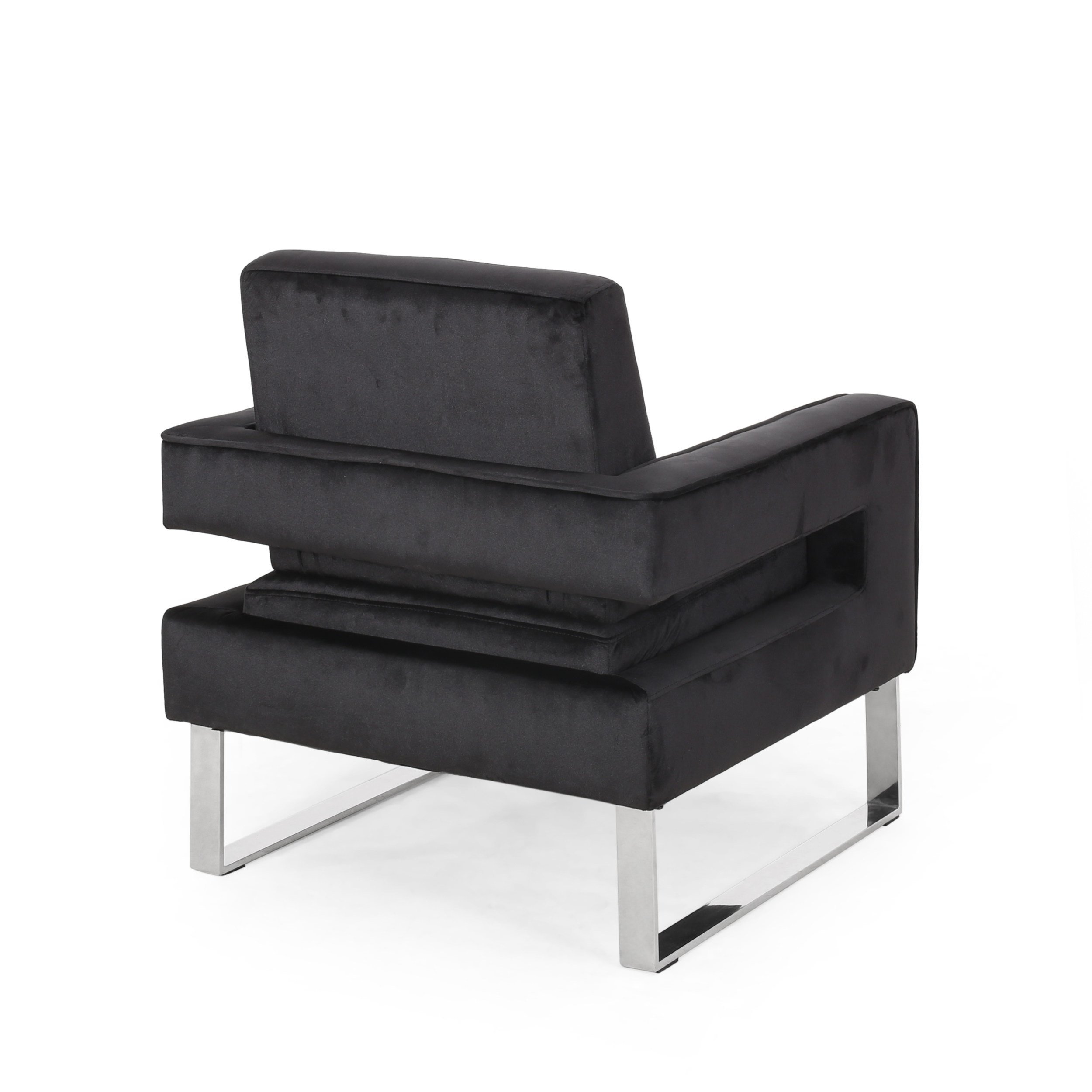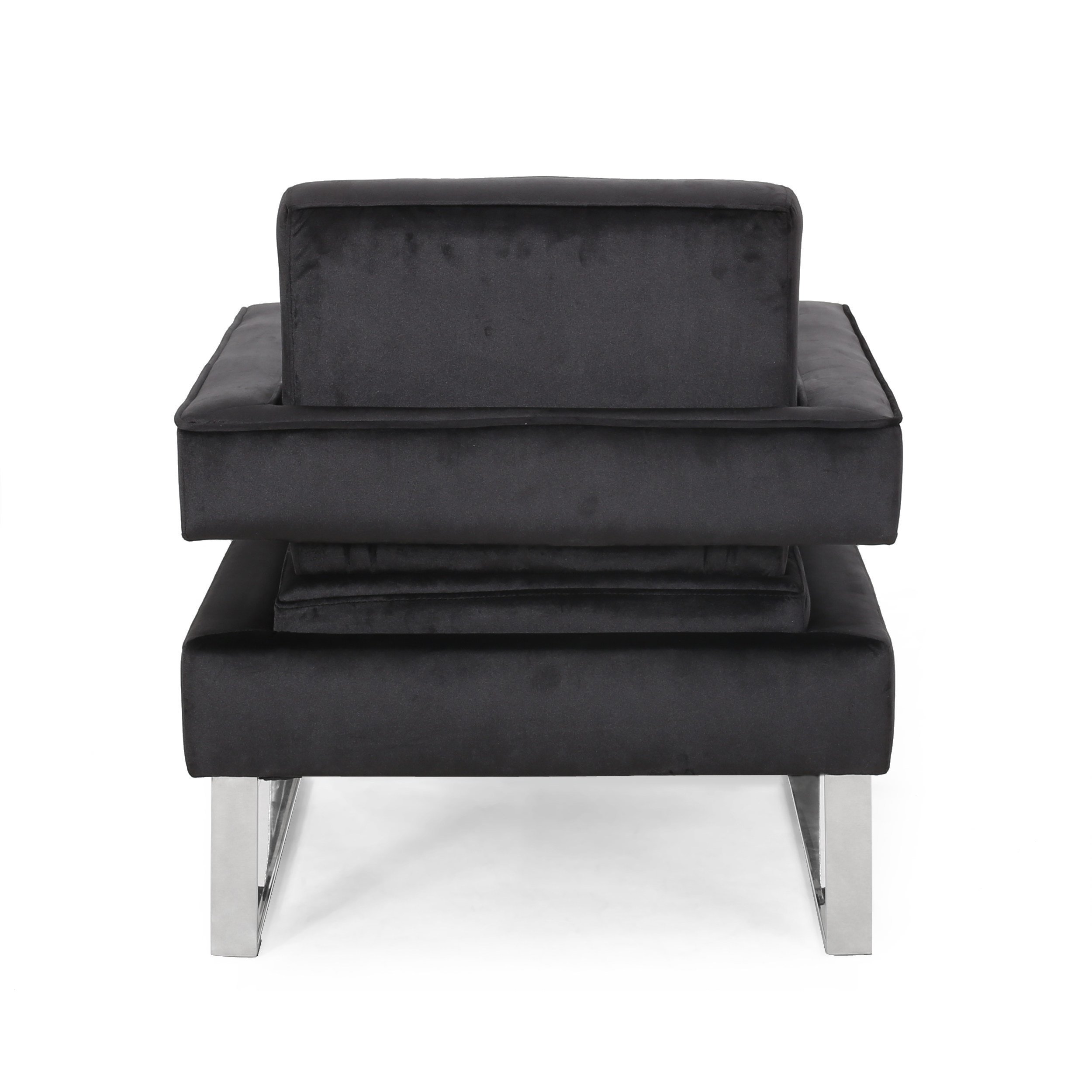 Modern glam: our Club chair showcases dazzling silver accents and velvet upholstery that pair seamlessly with clean, straight Lines for a luxurious modern glam look. Complemented with precise angles and minimalistic structure, This chair brings a sleek touch to any decor.