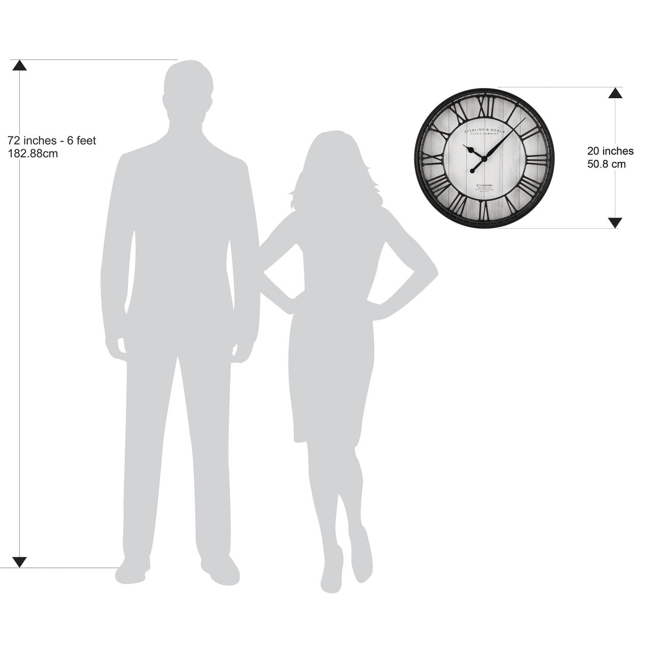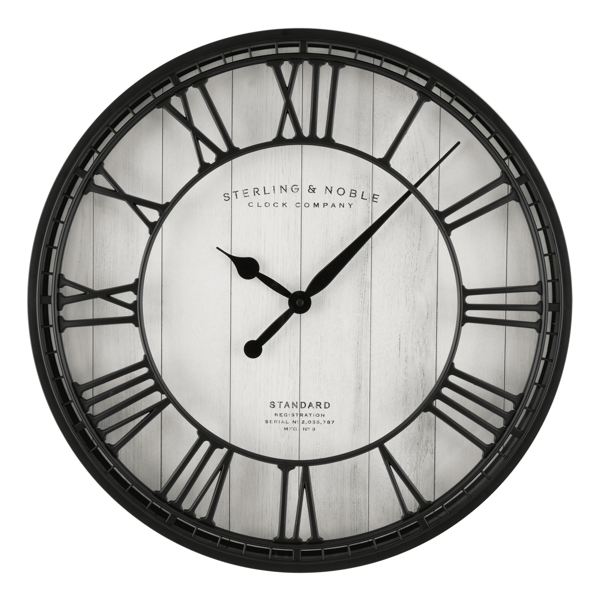 Enhance your home’s decorative styling with this better homes & gardens indoor 20' black roman numeral grill and white shiplap farmhouse wall clock! Full of detail and dimension, this clock’s design features a satin black roman numeral grill that is affixed to the top of the glass lens. The frame has the same satin black finish, securing the roman numeral grill and encasing the dial and glass lens. The dial’s photorealistic vertical whitewashed wood paneling gives this wall clock on-trend farmhouse flair. Teardrop spear hour and minute hands are finished in satin black, making the hands visible against the white-toned dial. Quality quartz movement ensures accurate timekeeping. With a diameter of 20', this beautiful wall clock is sure to make a grand statement! The neutral color palette keeps this clock’s design versatile, coordinating with any existing home décor! Bring this lovely piece home with you and see how it transforms your space!