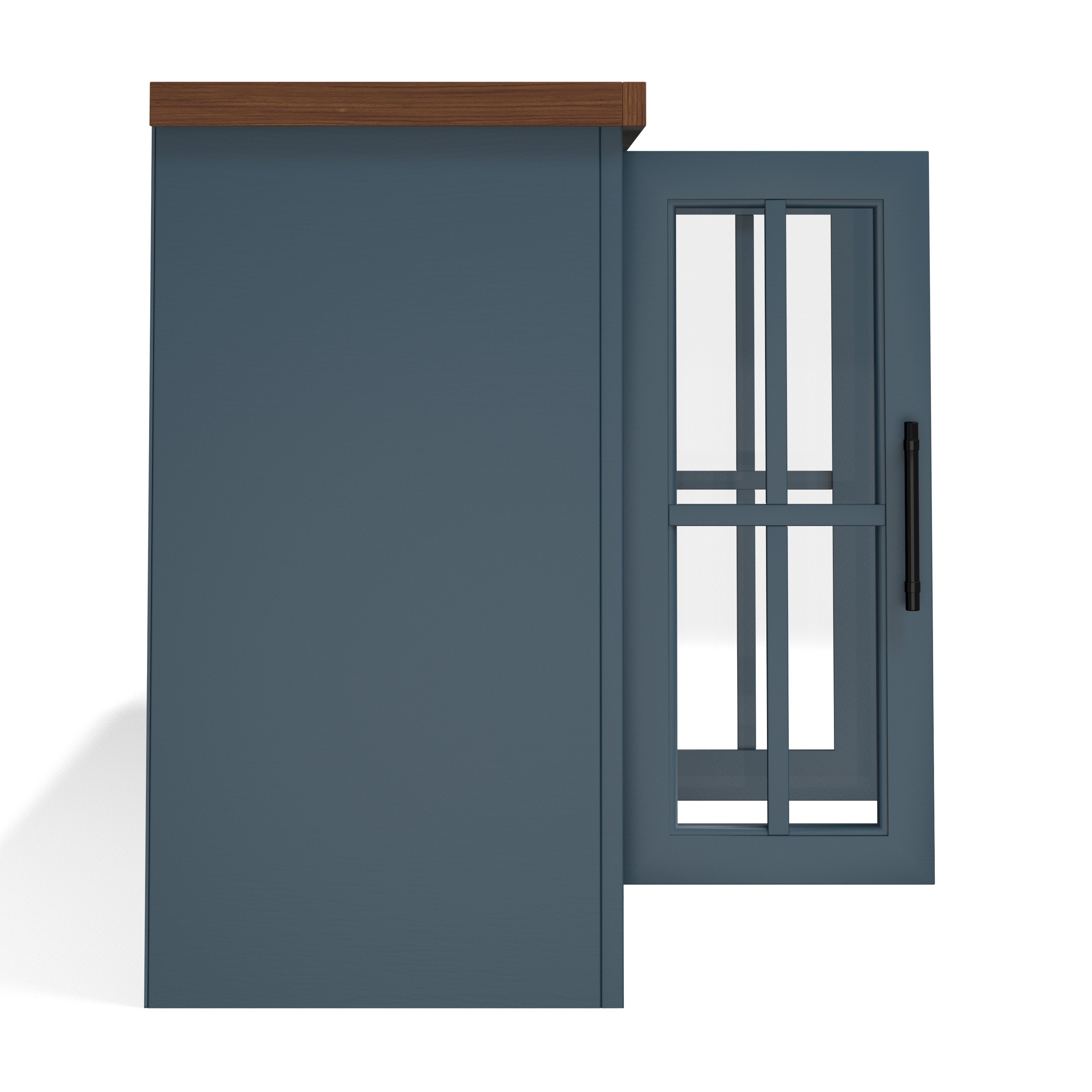 The Nantucket 97 inch Fireplace TV Stand Console from Bridgevine Home delivers a flawless combination of modern farmhouse style and country simplicity. Beautifully crafted from Poplar Solids, Okoume Veneers and Knotty Alder, this Fireplace Entertainment Center features a two-tone Blue Denim and Whiskey finish and oil-rubbed Bronze hardware. Ideal for TVs up to 100 inches, this Fireplace TV Stand includes four glass windowpane doors, three shelves and cable management on the back panel for media and gaming console storage. The 42 inch electric fireplace insert includes a remote control and multiple settings allow for heat up to 400 square feet. Four (included) screws make securing the fireplace insert to the console quick and simple.