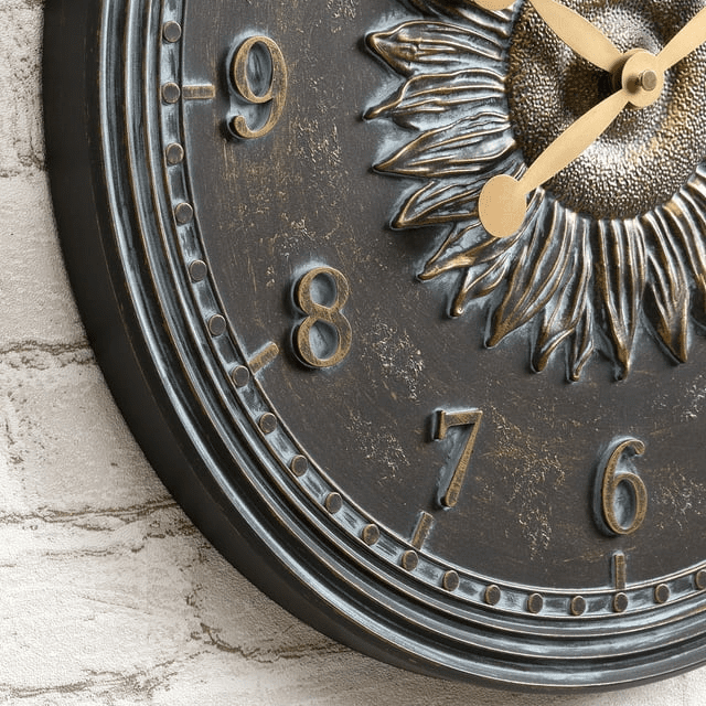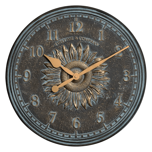 Nothing ties a room together better than a great clock, and the one you choose to place in your home or office should reflect your personality and style. We hear you. Bring a rustic look home today with our firstime & co. Verdigris calisto sunflower indoor outdoor clock and thermometer 2-piece set. Crafted of plastic with an antiqued bronze finish, this timepiece features a 16" diameter that is sure to be the centerpiece of any living space. This innovative clock also features a sculpted sunflower accent and an antique face with gold and teal patina. Finding the right clock to suit your style has never been easier thanks to our wide range of firstime & co. Timekeeping solutions.