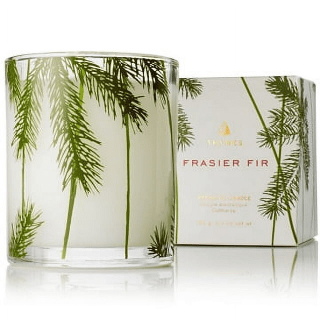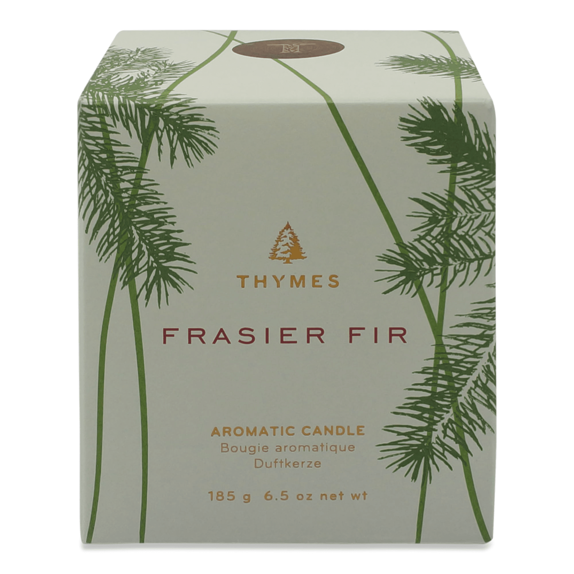 Thymes' frasier fir pine needle candle has bright white wax with a gorgeous winter pine scent. This candle fills the room it's in with the fresh, earthy warmth of fir, cedarwood, and sandalwood.The wick of this candle burns clean for approximately 45 hours.
