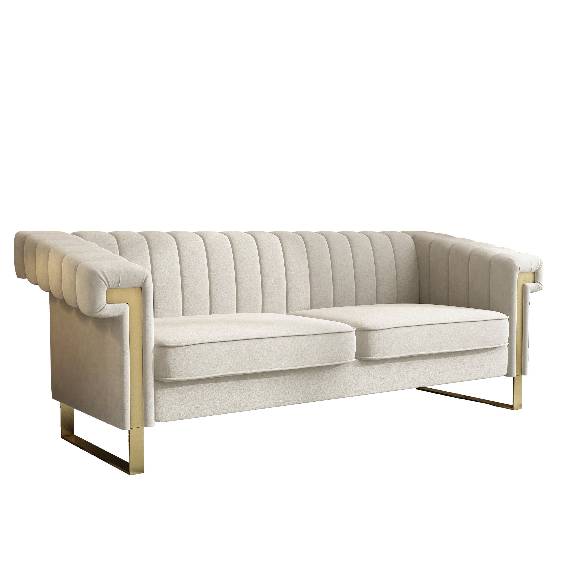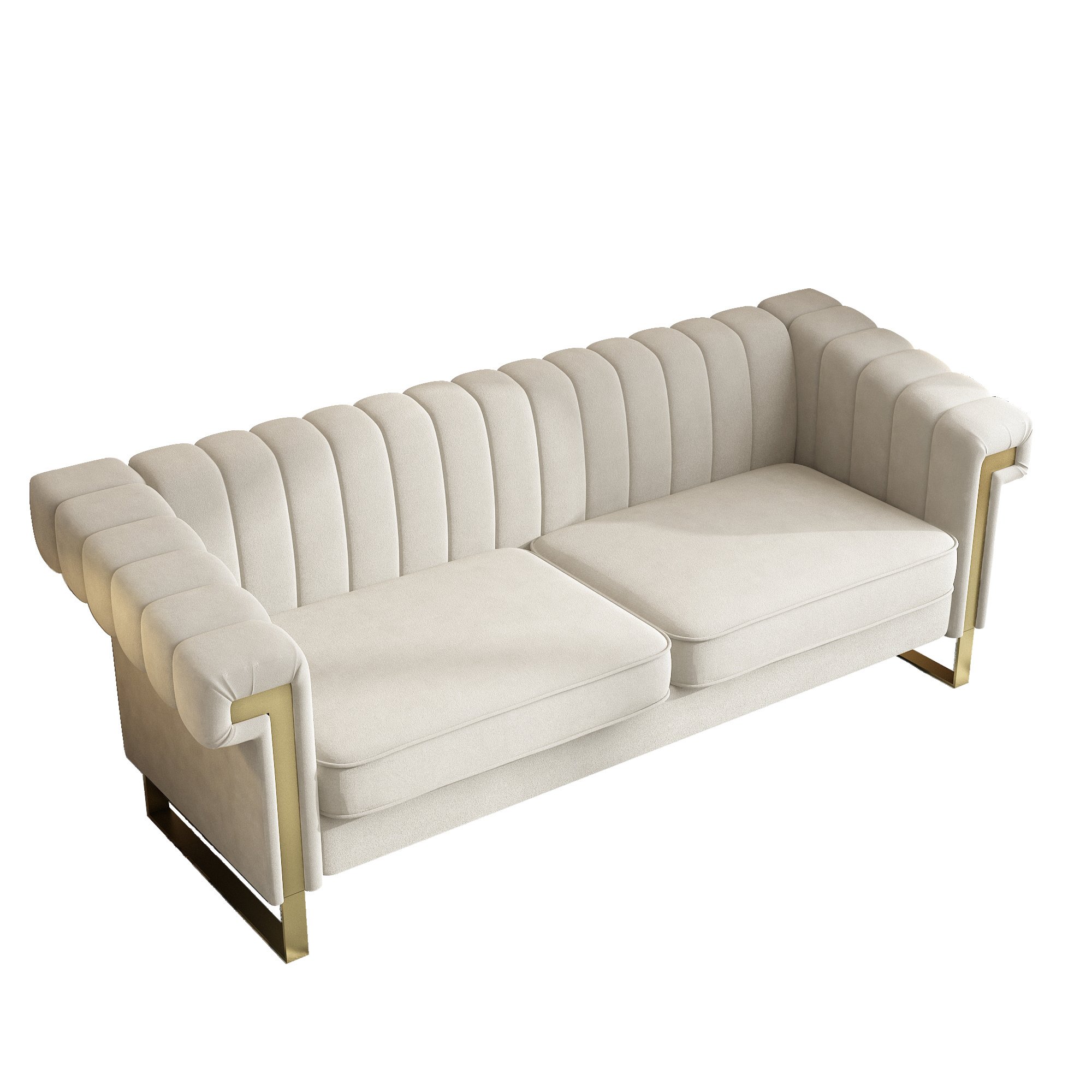 Product Features:1. The sofa is made of short plush cloth made of 100% polyester, soft, silky and skin-friendly.2. The pull point decoration on the back of the back and armrest makes the sofa more delicate. The ARMREST THAT TURNS OUT SHOWS ATMOSPHERE MORE, THE 2 STAINLESS STEEL METAL ON ARMREST IS DECORATED, LET SOFA BE FULL OF CONTEMPORARY BREATH.3. The seat bag is made of high rebound sponge and independent spring bag, which makes it more comfortable to sit. The seat bag can be removed and washed.4. This sofa is more suitable for use on the carpet. The 15cm high gold sofa foot makes it easy for the vacuum cleaner to enter and clean under the sofa.5. The sofa is completely disassembled and installed, so that you are full of fun when assembling.6. Daily care: gently wipe the dust on the surface of the sofa with the wet towel that does not twist the water, and often beat the cushion to keep the spring elastic. If there are stains, please use a special cloth cleaner to clean.
