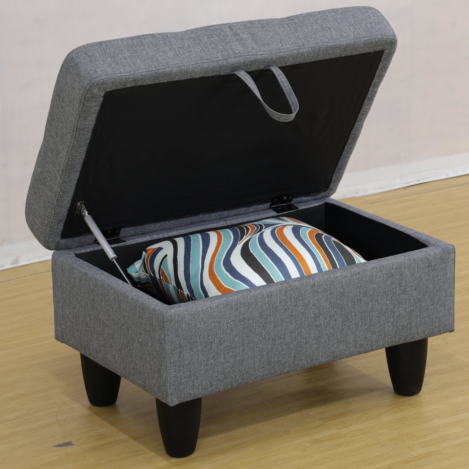 With stitching details for added interest and tapered wood legs , this large storage ottoman offers a stylish storage and seating solution for years to come.