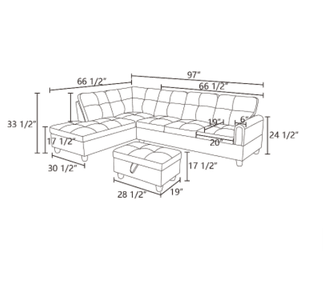 Sectional sofa overall approximately dimension: 103" x 73.5" x 32" high