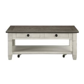 Rosy Brown and Antique White Finish 1pc Cocktail Table with Casters 2 Drawers Bottom Shelf Wooden Living Room Furniture
