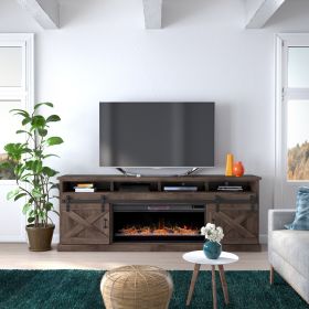 Bridgevine Home Joshua Creek 84 inch Electric Fireplace TV Stand for TVs up to 95 inches, Barnwood Finish