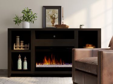Bridgevine Home Joshua Creek 62 inch Electric Fireplace TV Stand for TVs up to 70 inches, Barnwood Finish