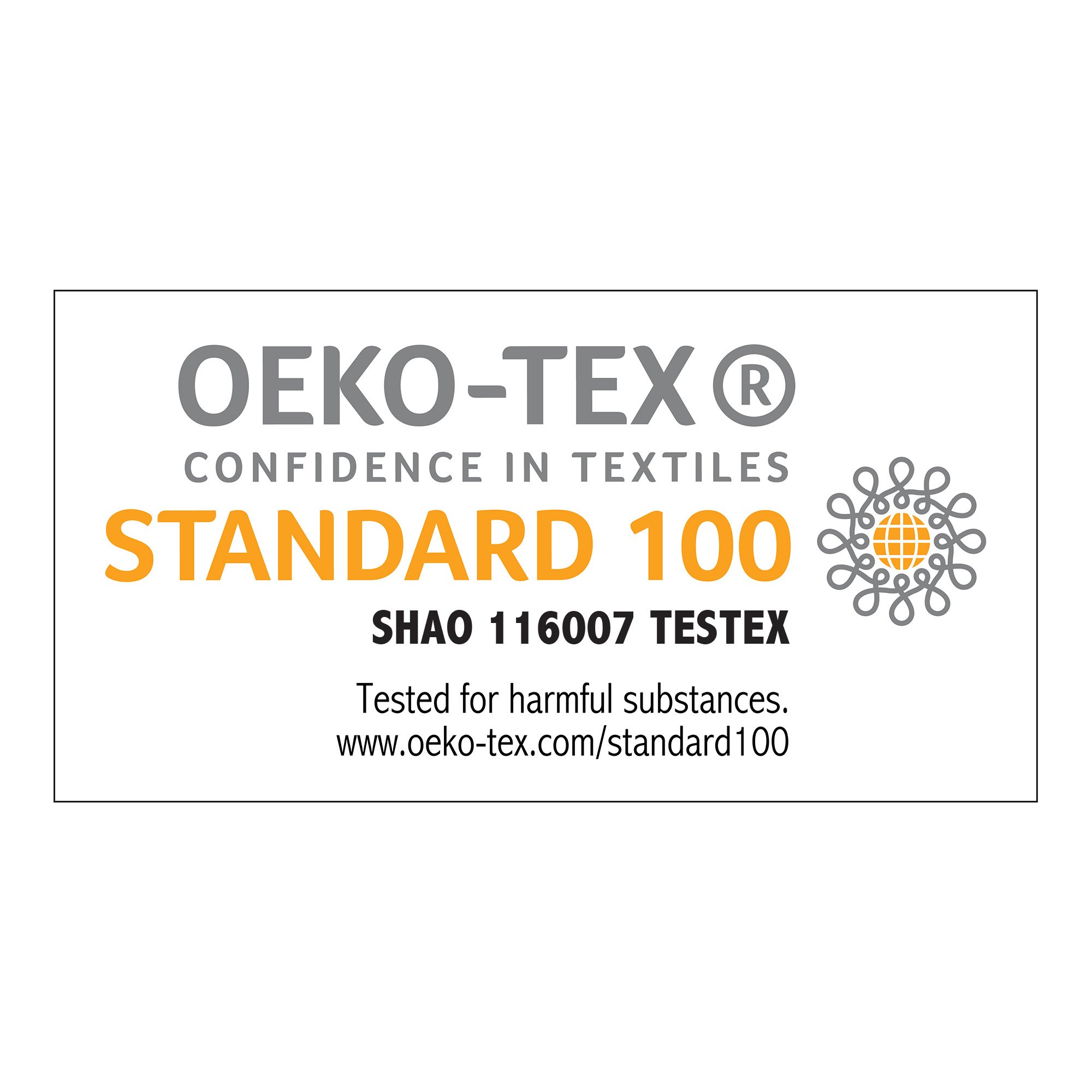Oeko-Tex Certified, includes no harmful substances or chemicals