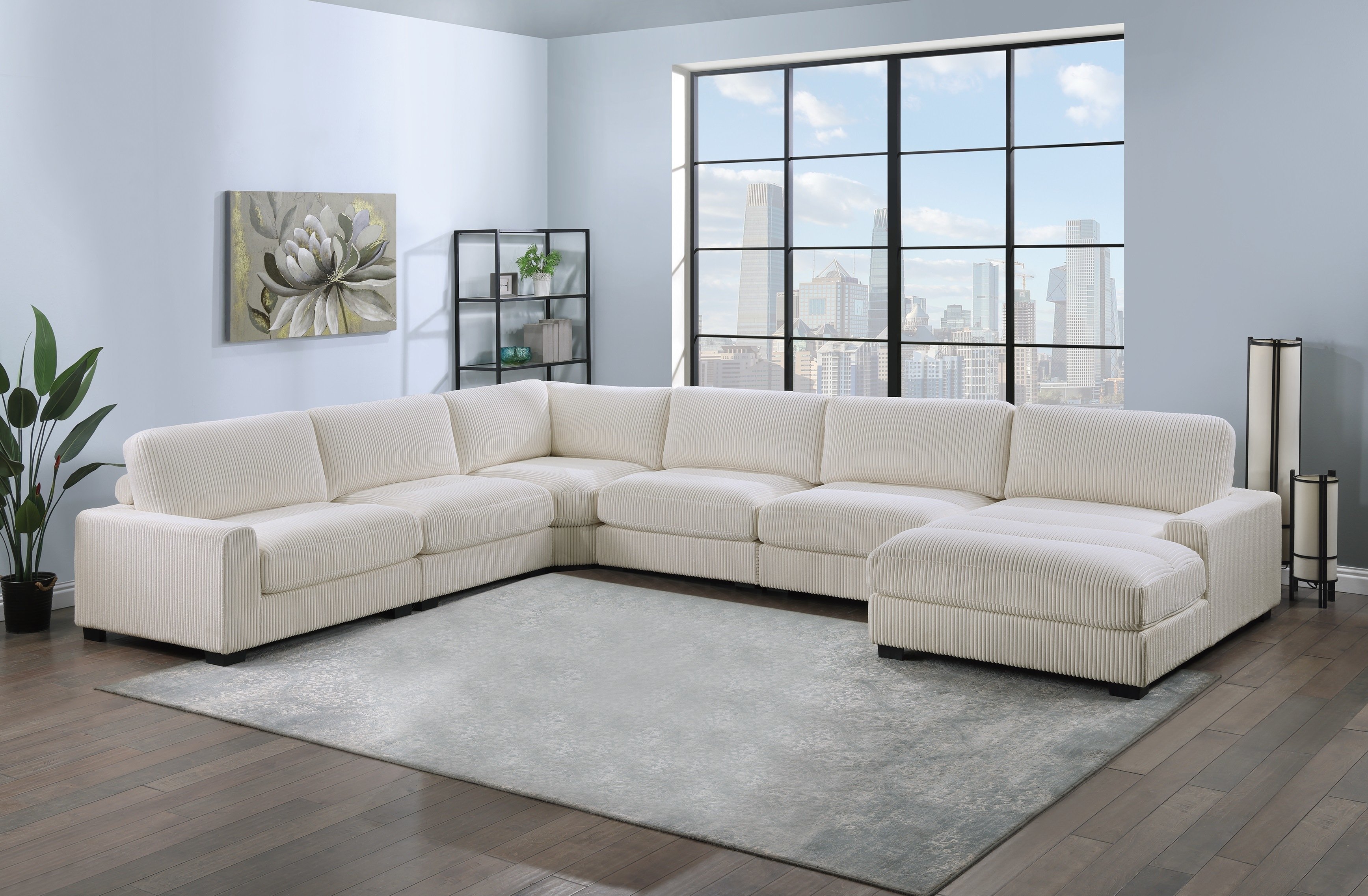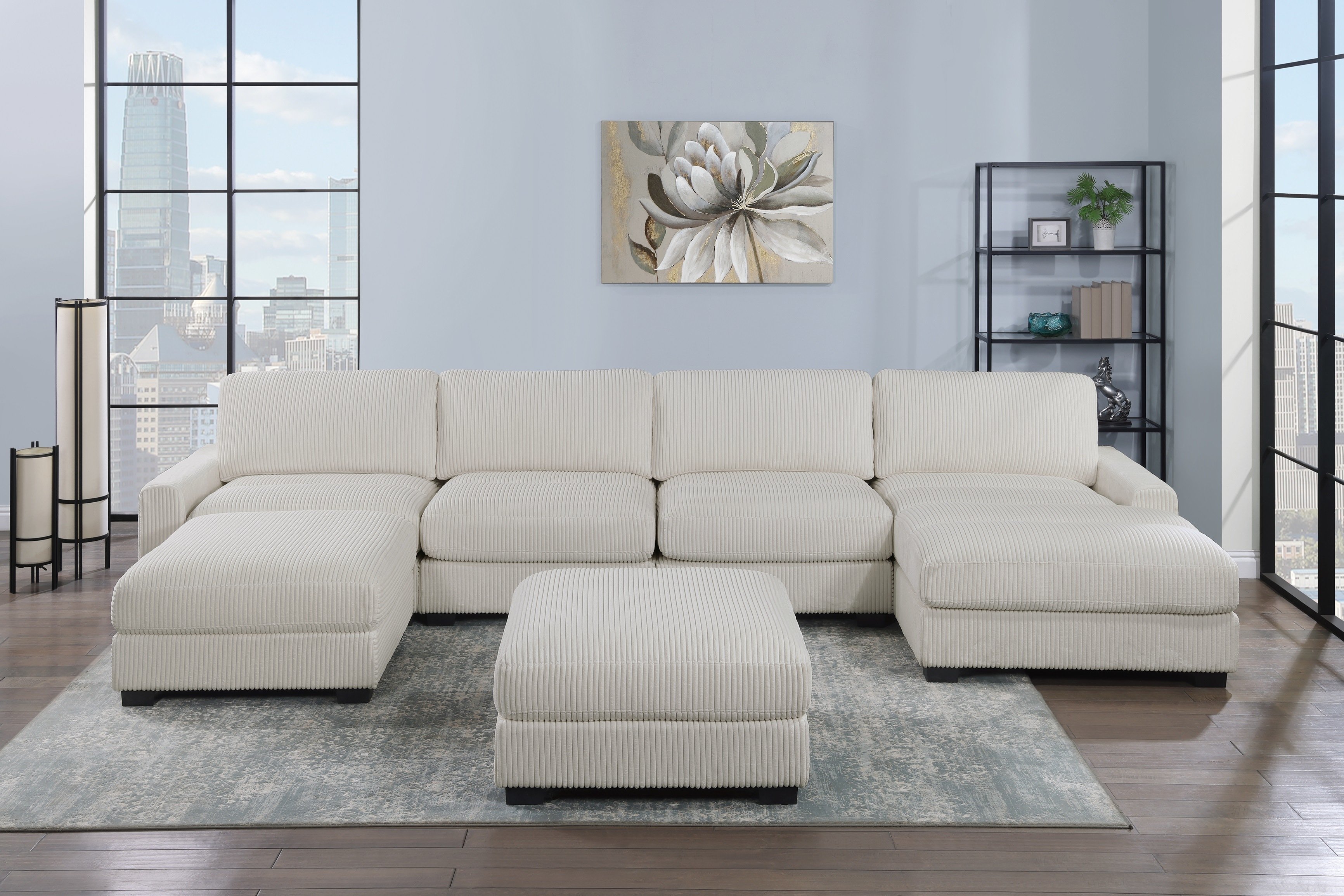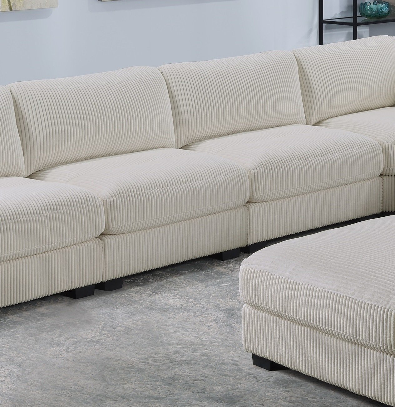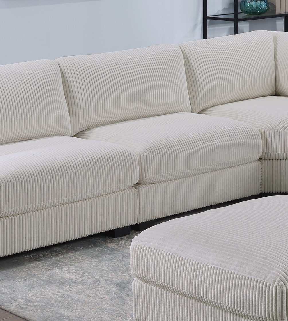 DescriptionProduct Description:- With the flexibility of separate pieces, you can create almost any shape, letting you design your furniture to suit your living room needs. This compact modular piece stands on low legs that are just barely visible, giving it its modern look. It's wrapped in super soft corduroy in a warm neutral hue that makes it even more inviting to family and friends.