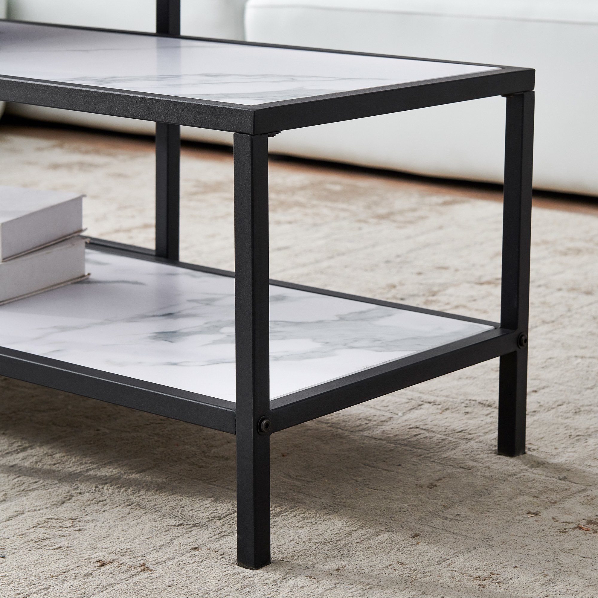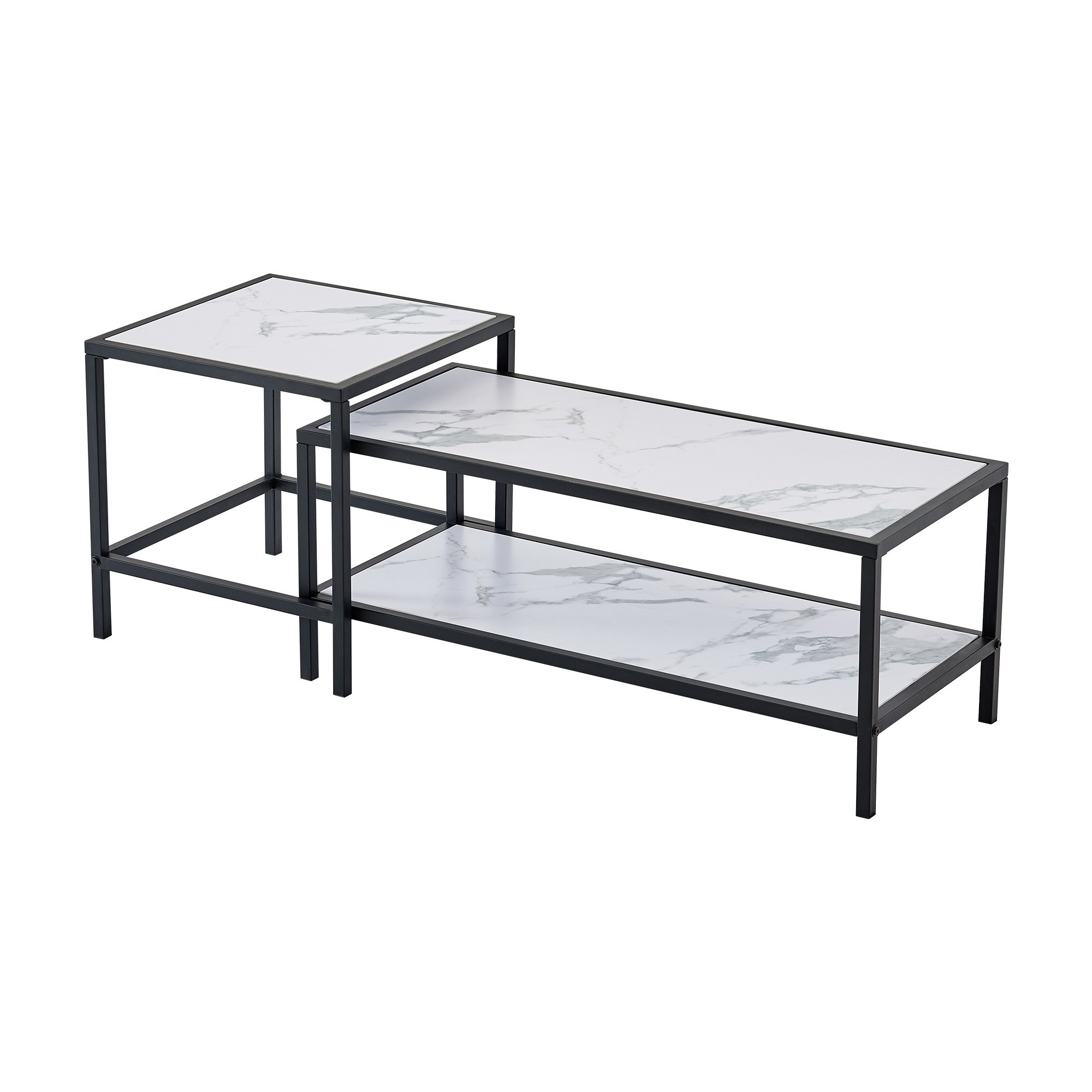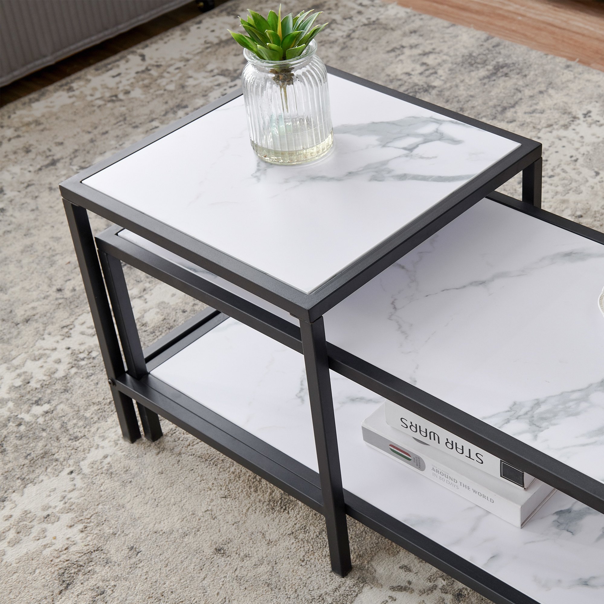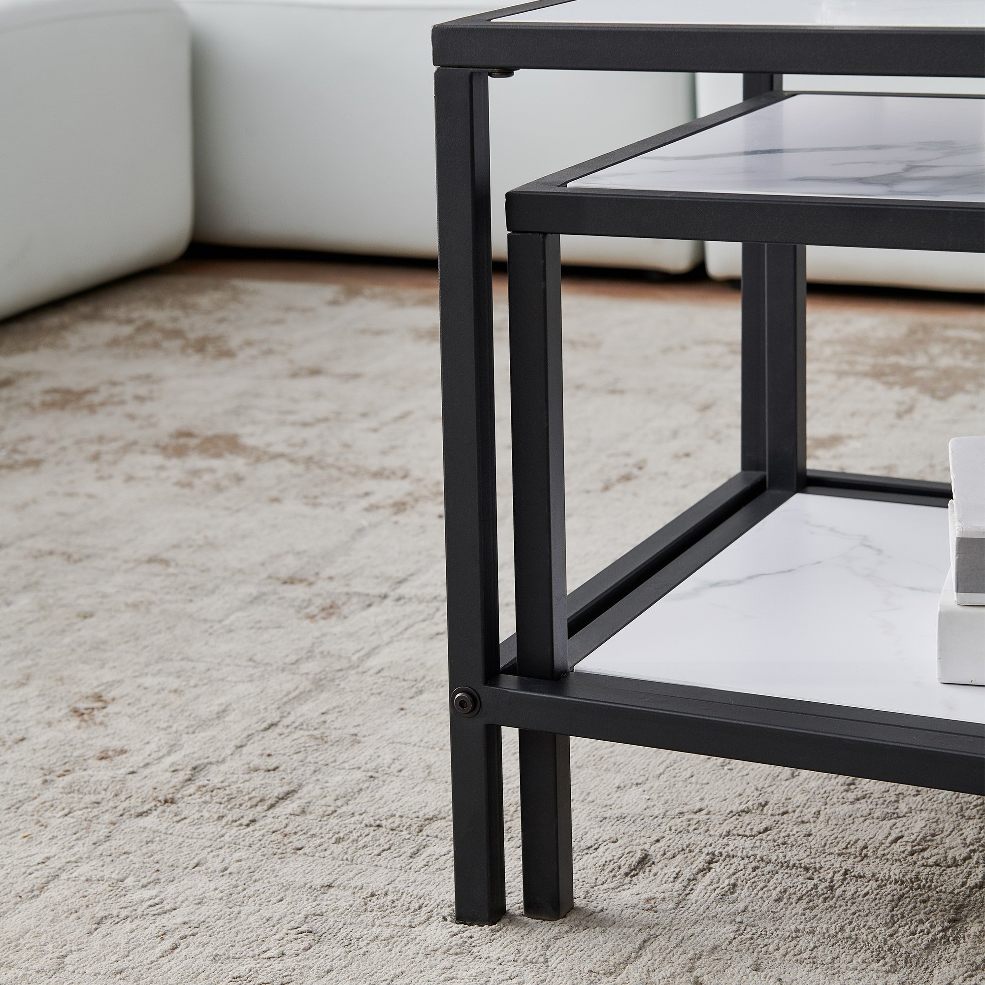 Modern Nesting coffee table Square & rectangle; Black metal frame with wood marble color top
