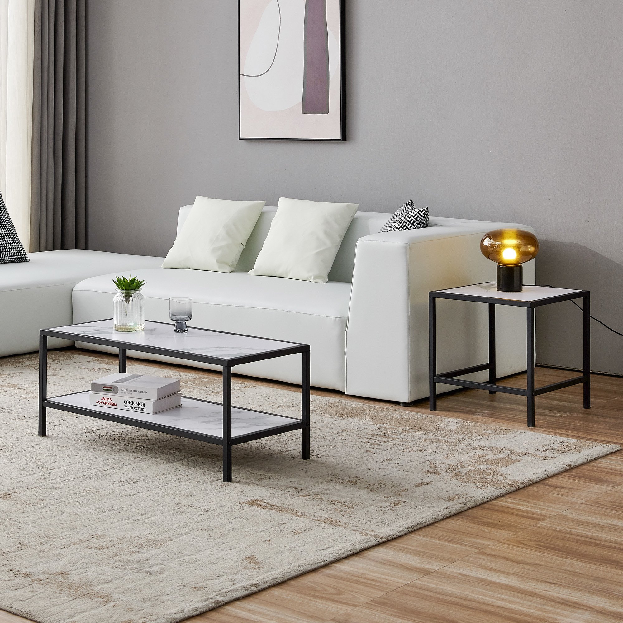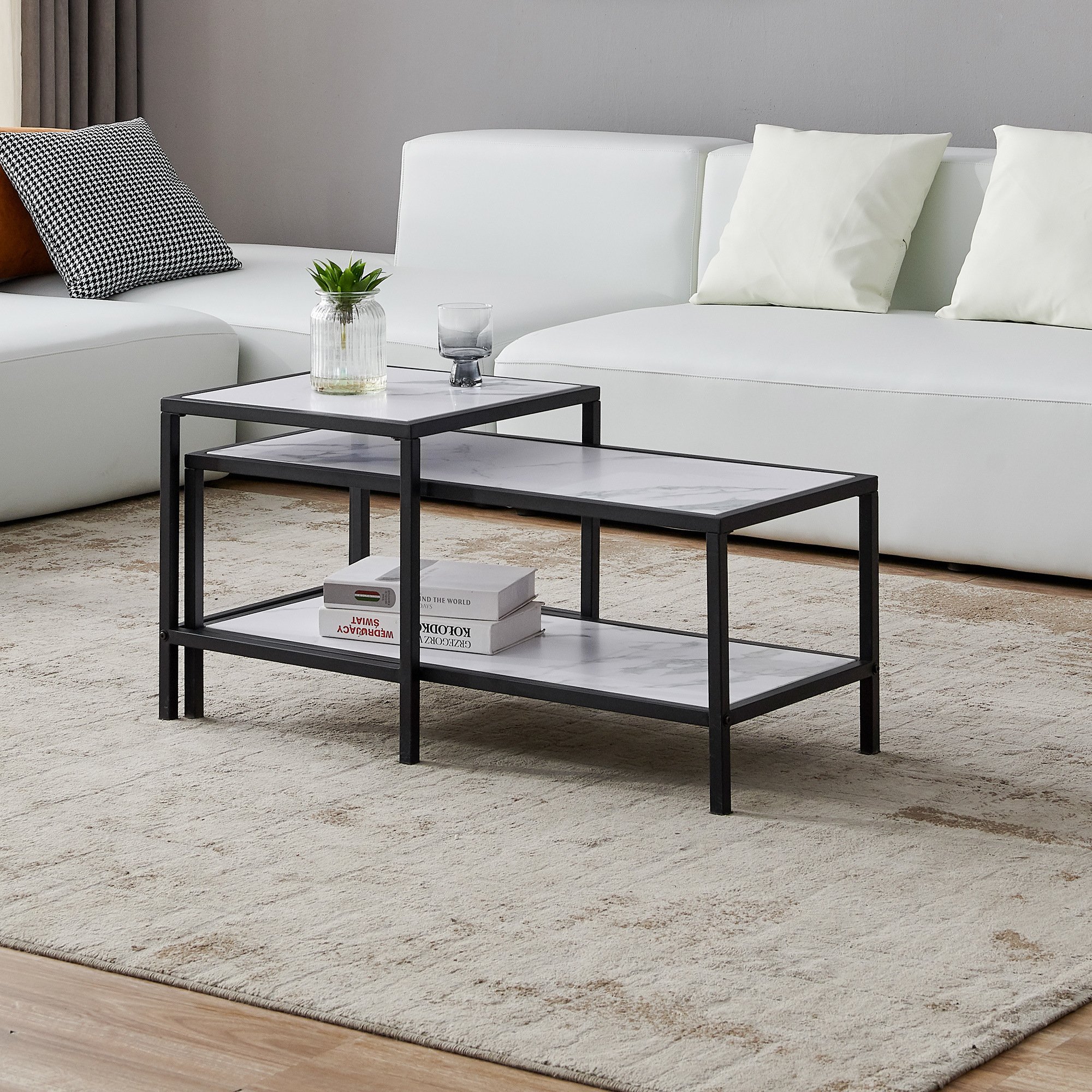 Nesting coffee table:The nesting coffee table includes 2 pcs tables; small square end table and large rectangle table. Allowing you to create your own contemporary look by stacking together to save space or placed separately as end tables.The staggered heights are on-trend.Different kinds of combination style can be easily achieved to fulfill changing individual requirement based on your home configuration. High quality materials:The top surfaces are finished in mdf wood with marble color. Combined with the metal legs; it provides a trendy natural style.Faux marble design show better performance in light weight so that it requires less effort to move the table; while show elegant appearance as the real marble. Space master:It provides additional storage space.storage space of large table is ideal for storing; books; magazines; laptops or more.It is perfect for many spaces and places at your home. Easy to clean:smooth table can be clean with a soft; damp cloth. Easy to Assembly:It's simple to install within 10 minutes.Tools and instructions needed are provided.