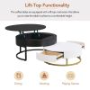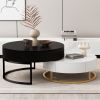 Modern Round Lift-top Nesting Coffee Tables with 2 Drawers White & Black