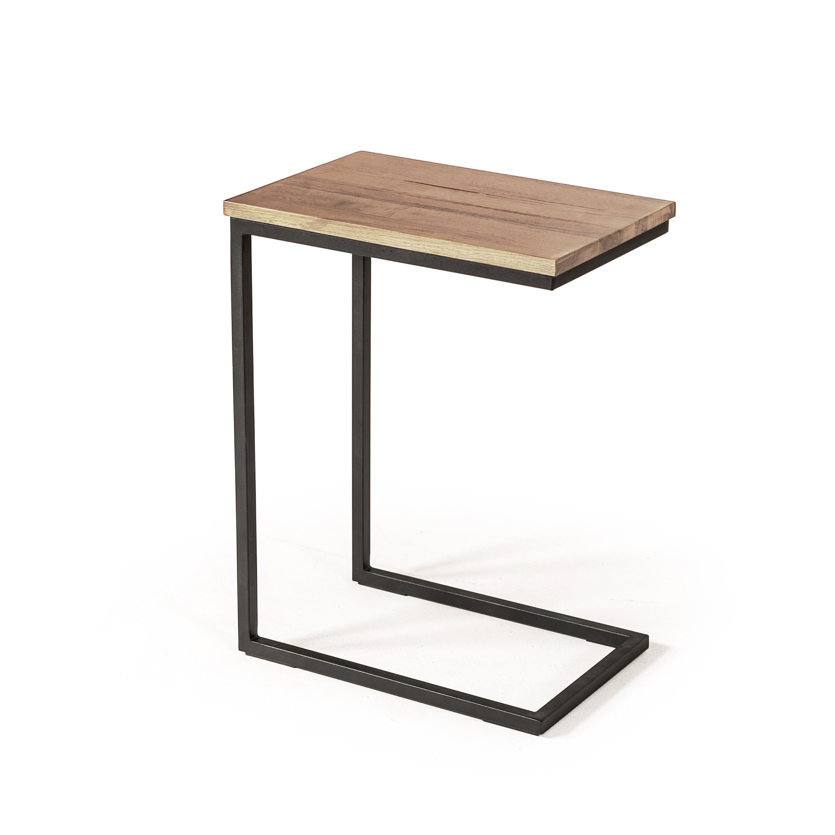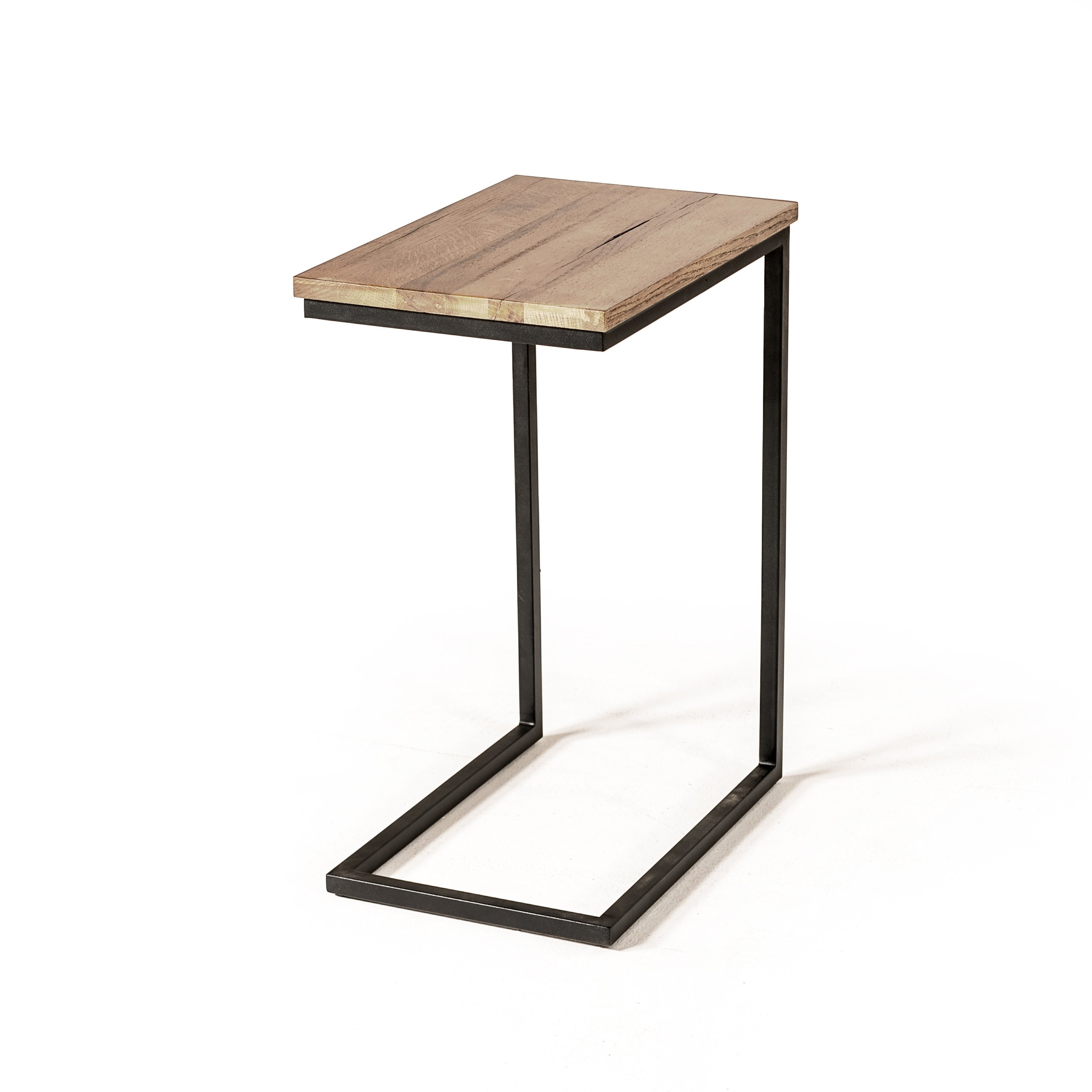 The Turner Side Table features simple elegance with an Solid Aged Oak table top with strong black metal base. This elegant modern Side Table can also be used in a Bedroom setting. Features:Solid Aged Oak Top. 3/4" Thick Top. Black Metal Base. No Assembly Required