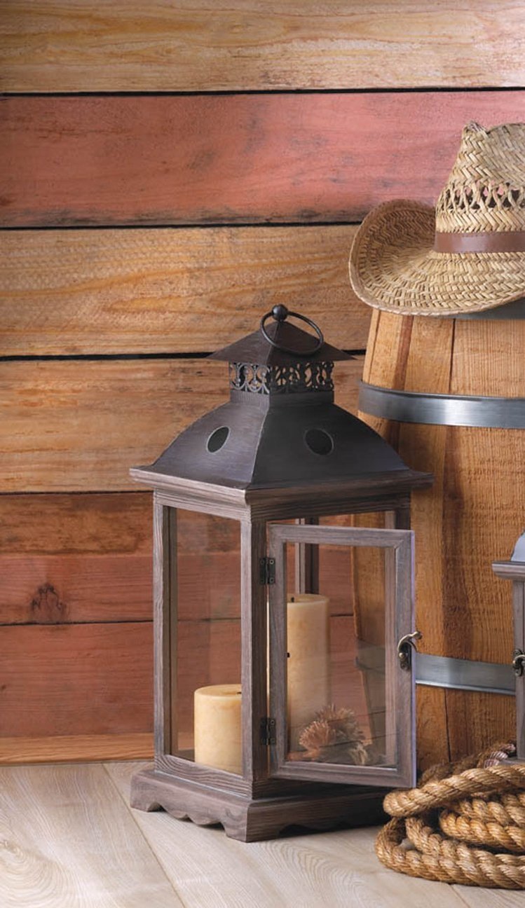 The stately design of this candle lantern will dress up your home, indoors or out. The wooden frame has a weathered finish and an antiqued latch on the hinged door makes it easy to insert the candle of your choice and enjoy the flickering glow. Topped with a decorative metal roof and hanging loop this piece is versatile and can serve as indoor ambience, wedding décor, or even the centerpiece of a table spread! Pairs well with the Small Monticello Lantern or as a gift by itself.