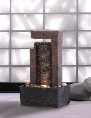 • Add peaceful flowing water and shimmering LED-powered light to your living space with this calming fountain. The beautiful architectural design of this water fountain will complement any decor and give soothing solace to any space.