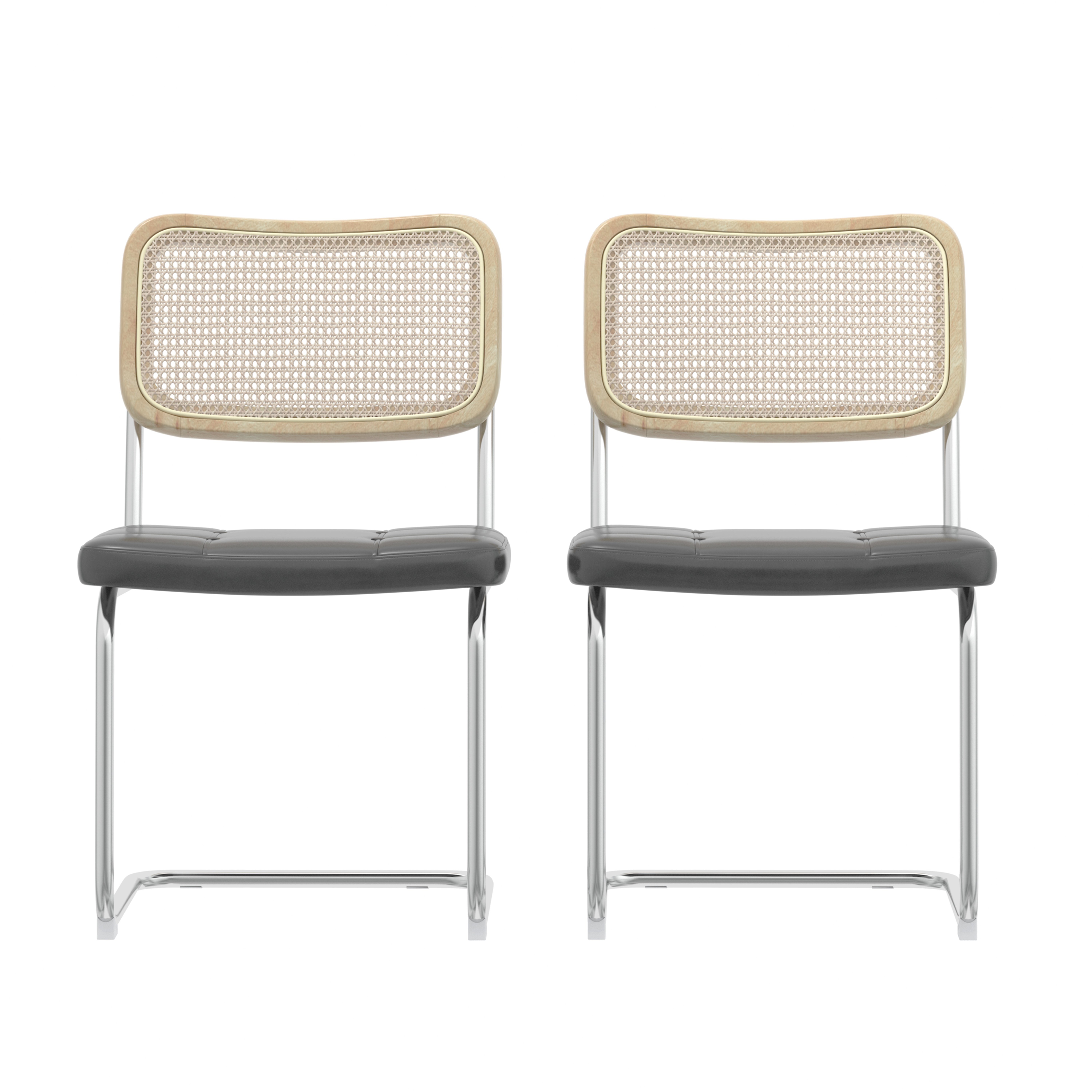Set of 2, Leather Dining Chair with High-Density Sponge, Rattan Chair for Dining room, Living room, Bedroom, Gray