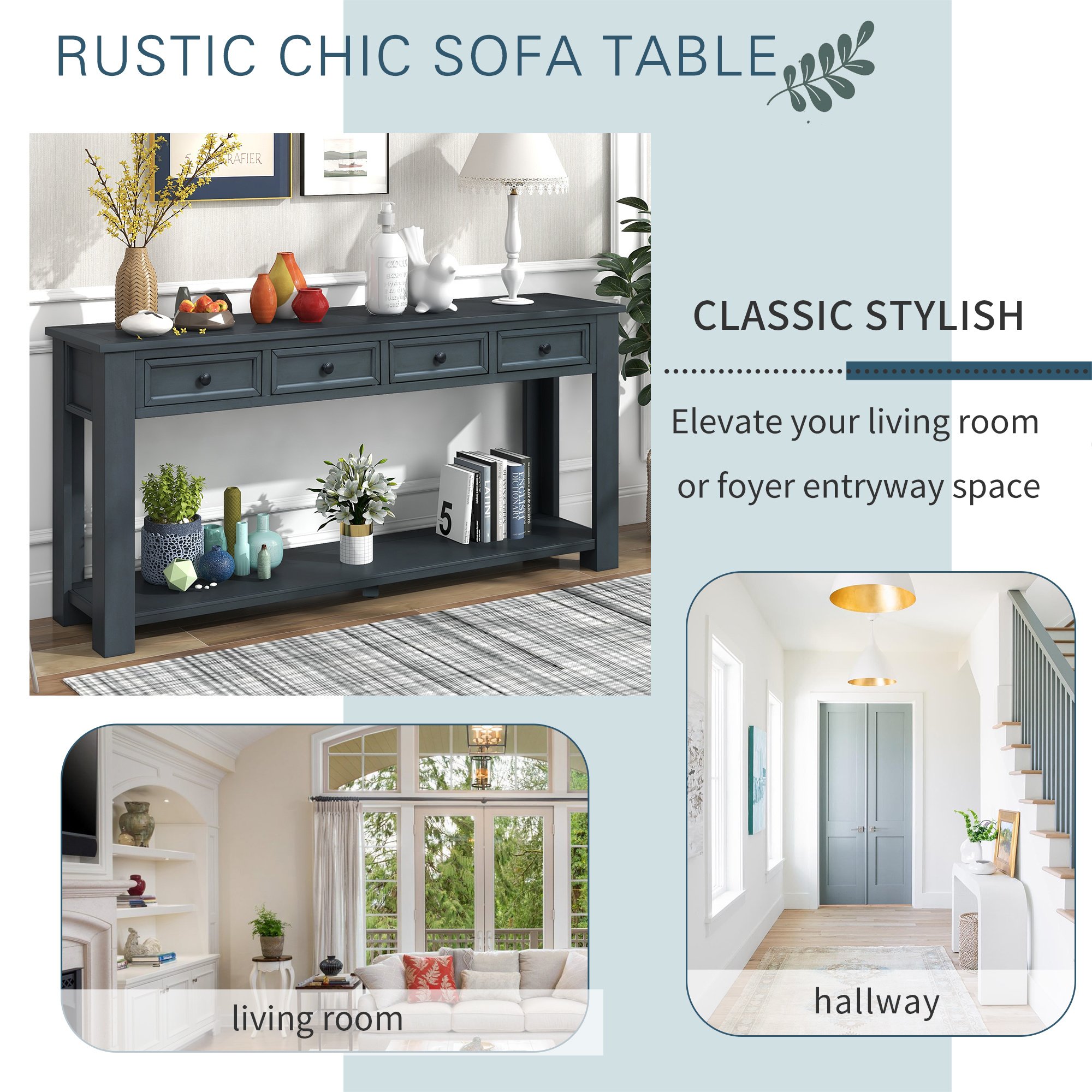 TREXM Console Table/Sofa Table with Storage Drawers and Bottom Shelf for Entryway Hallway (Navy)