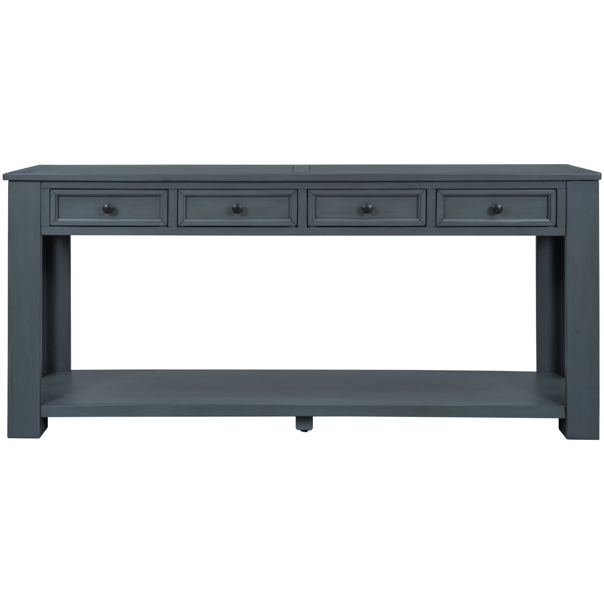 Large Storage Space: Dimensions 63"L× 14"W× 30"H. The console table features with 4 drawers and a fixed lower shelf and long enough tabletop which provide enough storage space.