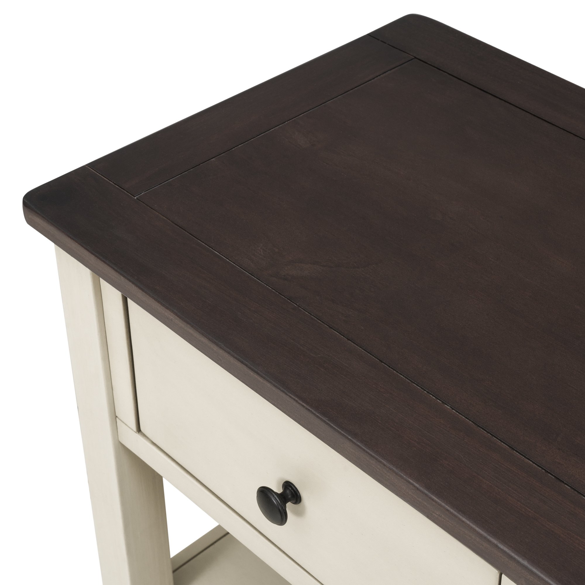 TREXM Retro Design Console Table with Two Open Shelves, Pine Solid Wood Frame and Legs for Living Room (Espresso+Beige)