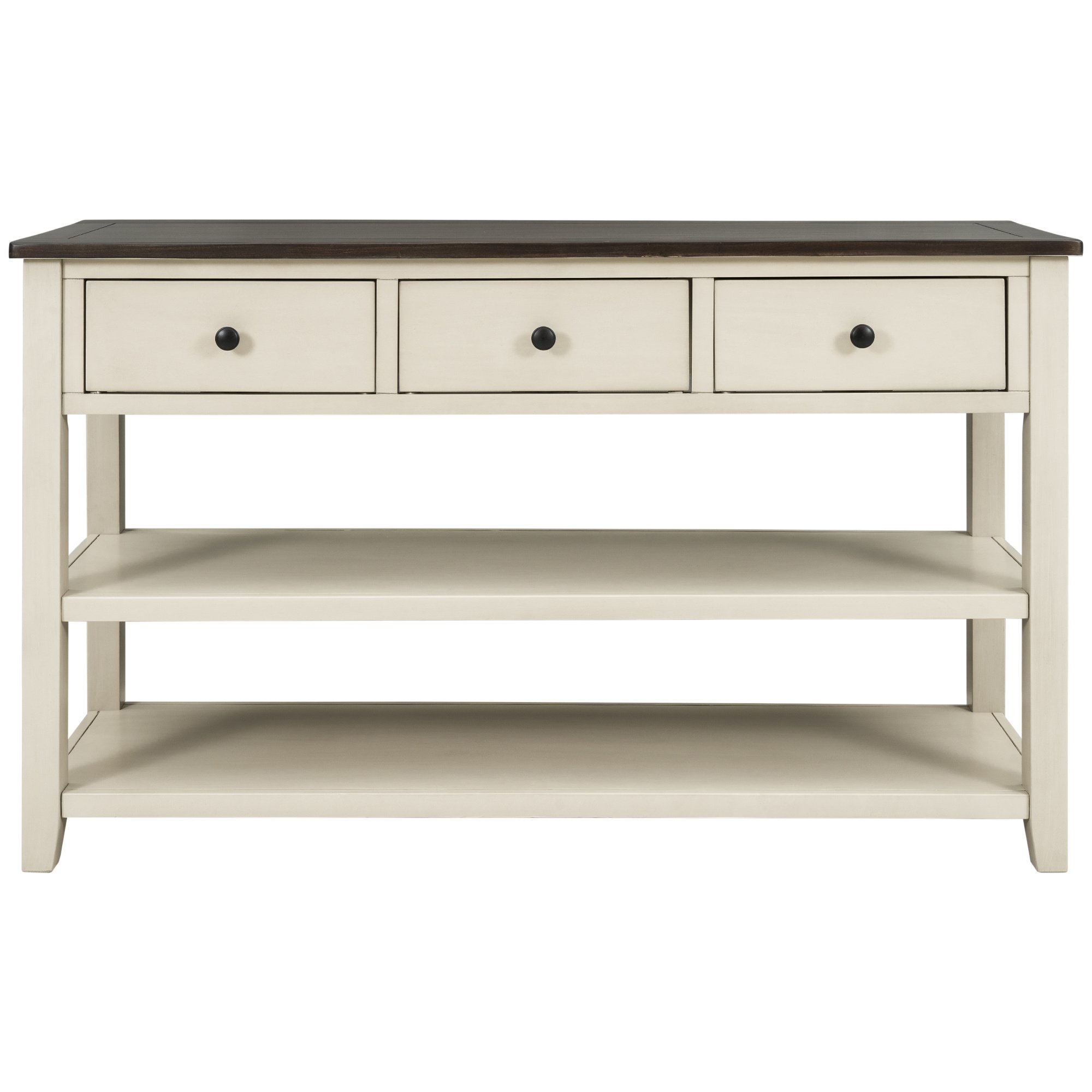 Home > TREXM Retro Design Console Table with Two Open Shelves, Pine Solid Wood Frame and Legs for Living Room (Espresso+Beige)