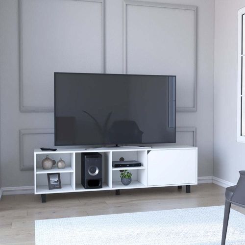 TV Stand for TV´s up 70" Estocolmo, Four Open Shelves, White Finish
