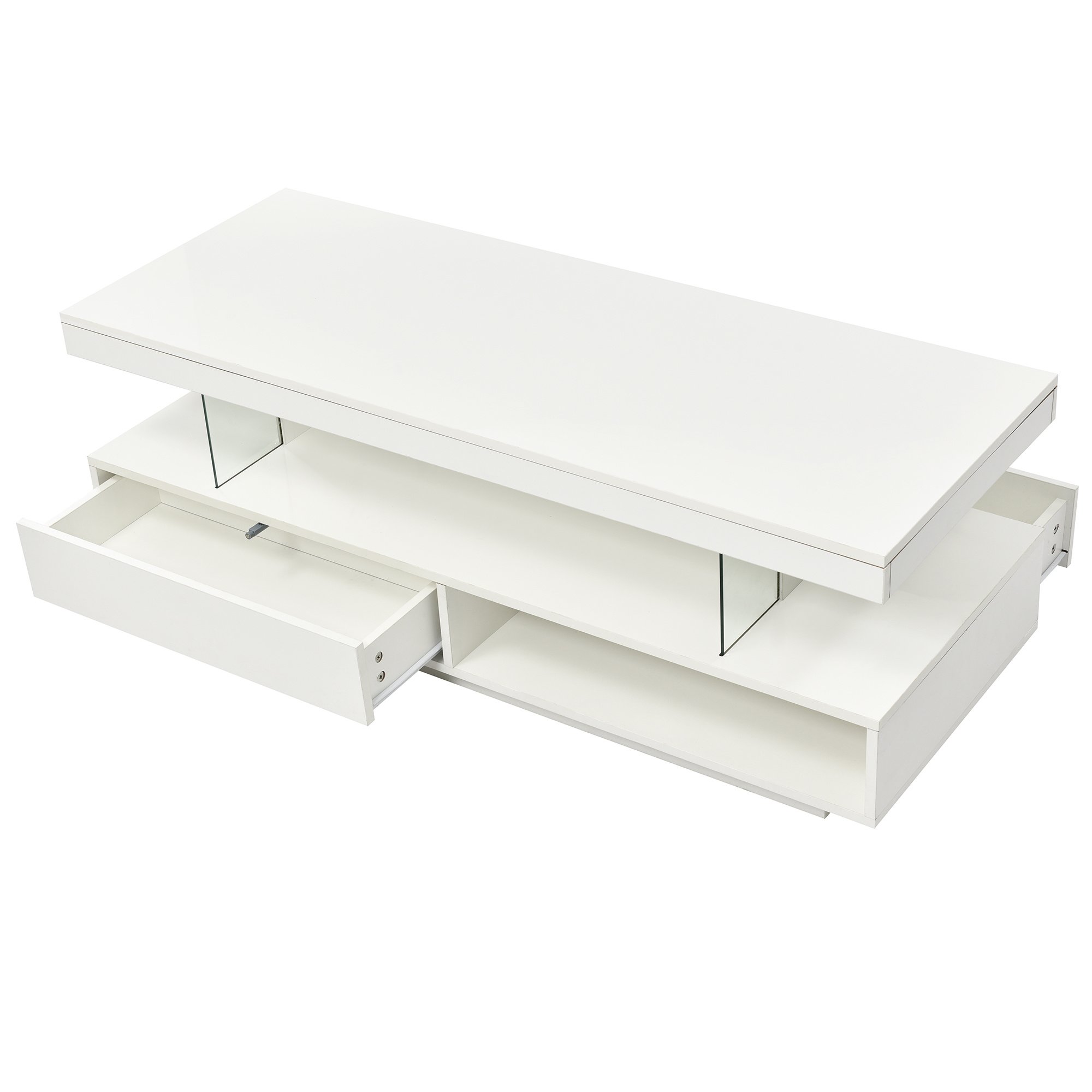 U-Can LED Coffee Table with Storage, Modern Center Table with 2 Drawers and Display Shelves, Accent Furniture with LED Lights for Living Room,White