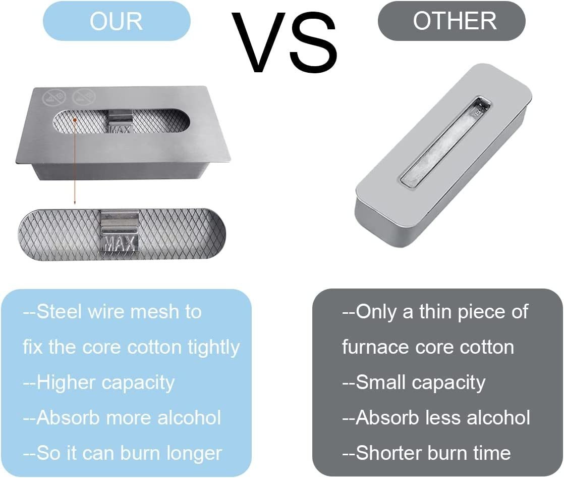 2.Fiberglass wool wick prevent fuel spillage; ensures long-lasting use. Open real flame burns completely ventless; soot free; ash free; easily light and extinguish