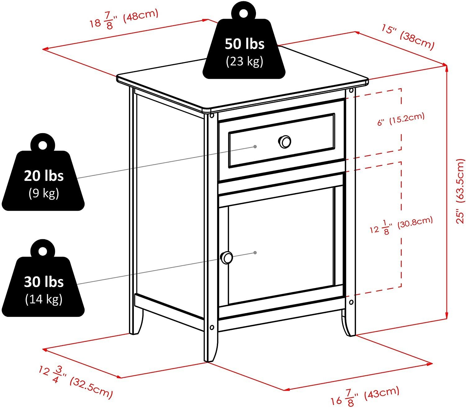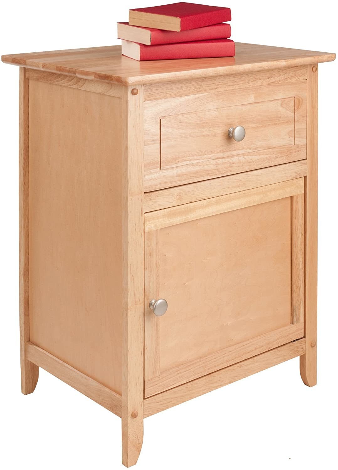 This Night Stand has a simple and ageless design that allows it to blend with any style and provides plenty of storage space in the pull out drawer and spacious cabinet both with a satin nickel knob.